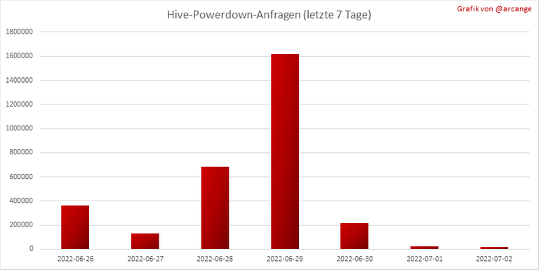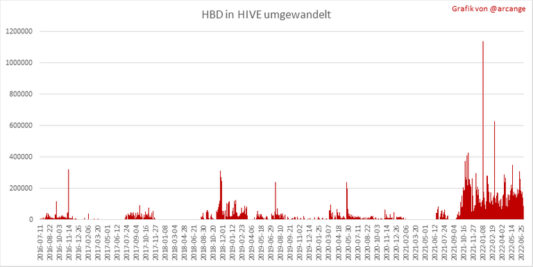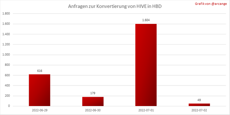 Diese Grafik zeigt die Anzahl der HIVE-Besicherungen aufgrund von Anfragen zur Umwandlung von HIVE in HBD in den letzten Tagen.
