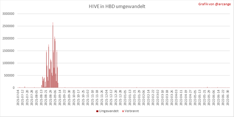 Notiz: Zur Erinnerung: Conversion-Anfragen werden erst nach 3 Tagen abgeschlossen. Erst dann ist genau bekannt, wie viele HIVE im Gegenzug für die zum Zeitpunkt der Konvertierungsanfrage erhaltene HBD verbrannt wurden.