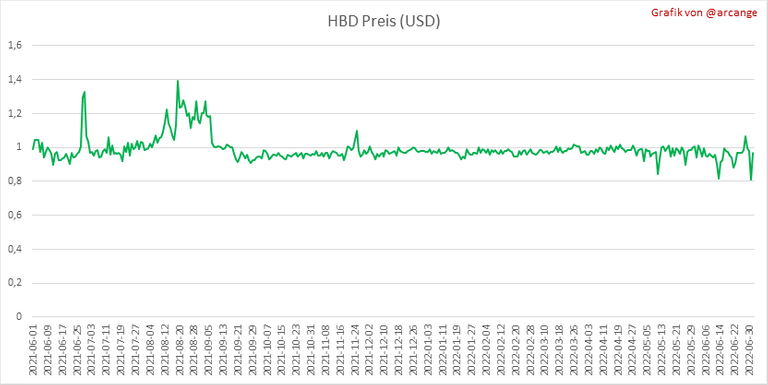 Diese Grafiken zeigen die Preisentwicklung in USD für HIVE und HBD.