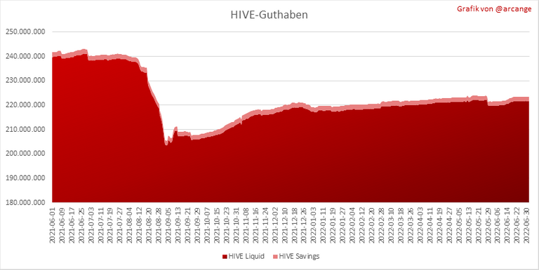 Diese Grafik zeigt die Anzahl der HIVE, sowohl liquide als auch in Ersparnissen, die von allen Konten gehalten werden.
