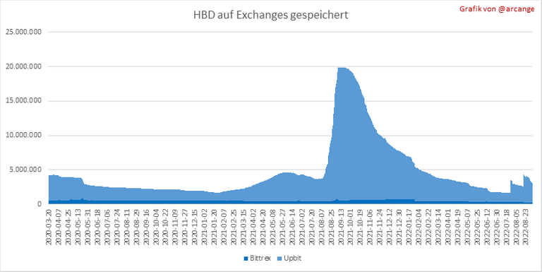 Diese Grafiken zeigen die Menge und Verteilung von HIVE und HBD, die an den Exchanges gespeichert sind, an denen sie gelistet sind.