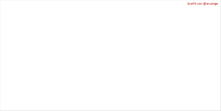 Diese Grafik zeigt die Entwicklung des virtuellen HIVE-Angebot. Das virtuelle Angebot ist die Summe aus HIVE-Angebot (flüssiges oder staked HIVE) und HBD-Angebot (umgerechnet in HIVE).