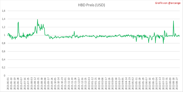 Diese Grafiken zeigen die Preisentwicklung in USD für HIVE und HBD.
