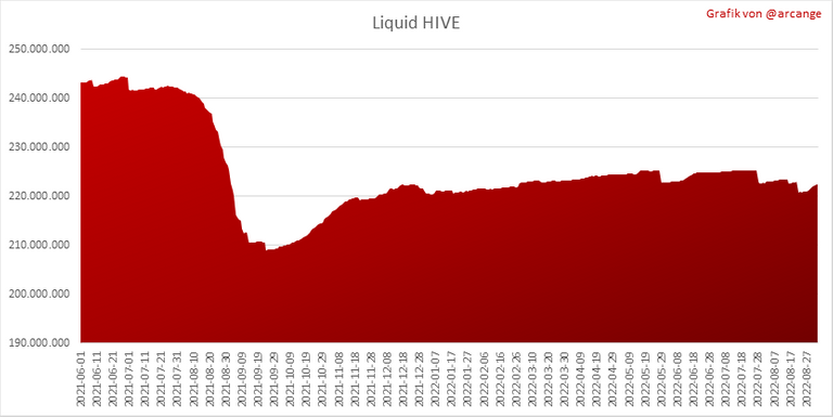 Diese Grafik zeigt die Anzahl der HIVE, sowohl liquide als auch in Ersparnissen, die von allen Konten gehalten werden.