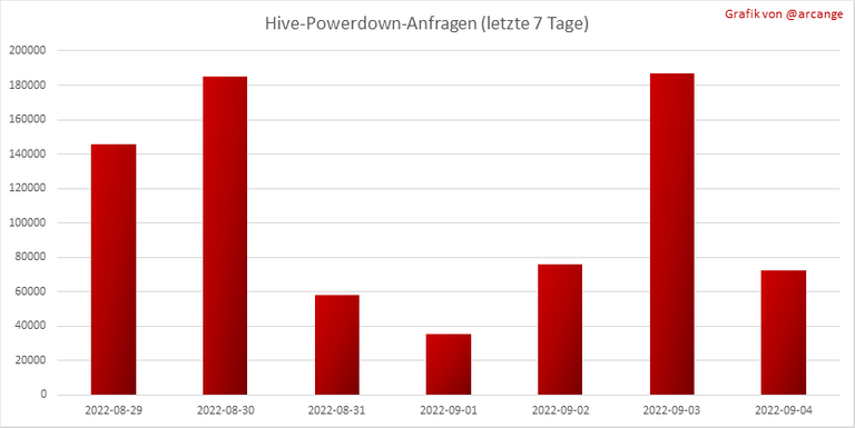 Diese Grafik und die Tabelle zeigen die Anzahl der in den letzten 7 Tagen eingeleiteten Powerdown und die größte an diesem Tag.