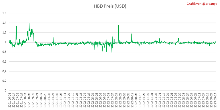 Diese Grafiken zeigen die Preisentwicklung in USD für HIVE und HBD.