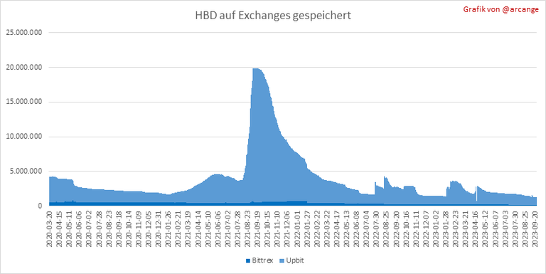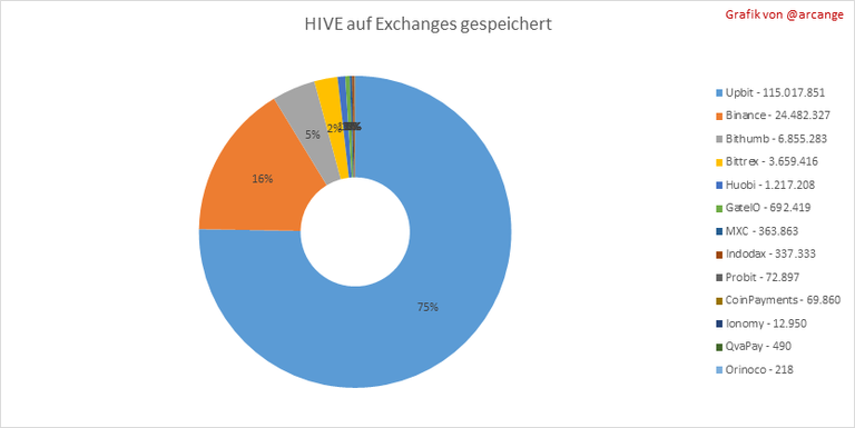 Diese Grafiken zeigen die Menge und Verteilung von HIVE und HBD, die an den Exchanges gespeichert sind, an denen sie gelistet sind.