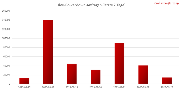 Diese Grafik und die Tabelle zeigen die Anzahl der in den letzten 7 Tagen eingeleiteten Powerdown und die größte an diesem Tag.