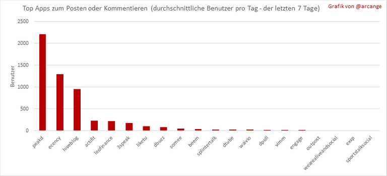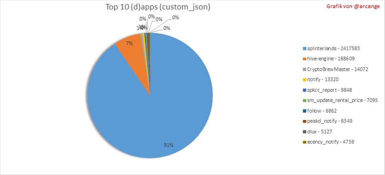 Dieses Diagramm zeigt, welche Apps die meisten Aktivitäten (custom_json-Operationen) in der Blockchain generieren.