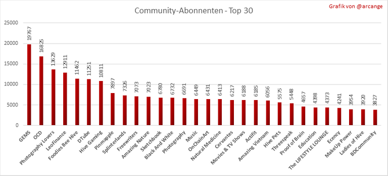 Diese Grafik zeigt die Communitys mit den meisten Abonnenten.