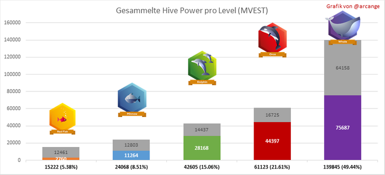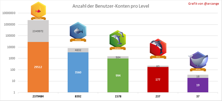 Der graue Teil jeder Spalte zeigt nicht genutzte Hive Power durch inaktive Konten an (siehe oben die Definition von inaktiv).