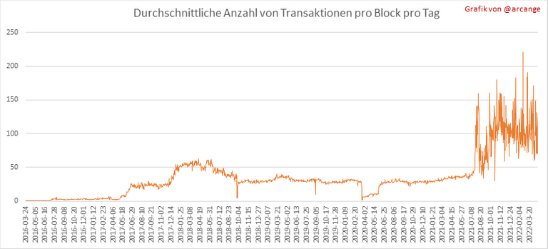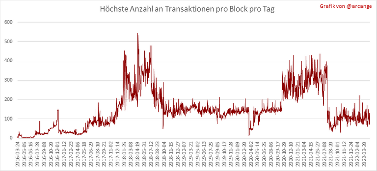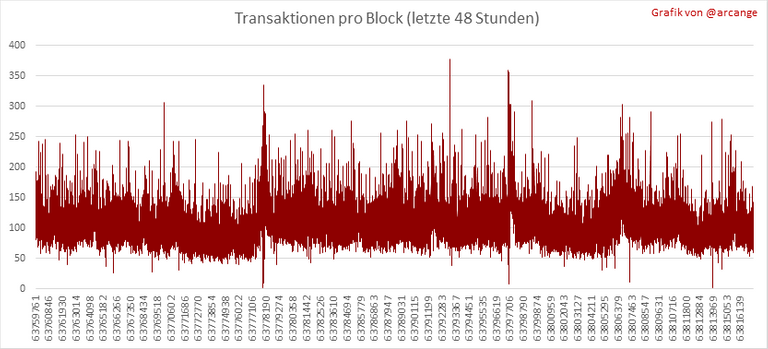 Diese Grafiken zeigen die Anzahl der Transaktionen pro Tag, die höchste Anzahl an Transaktionen pro Block, die durchschnittliche Anzahl an Transaktionen pro Block und die Anzahl der Transaktionen pro Block in den letzten 48 Stunden. Hier bekommt man eine Vorstellung von der gesamten Aktivität auf der Blockchain.