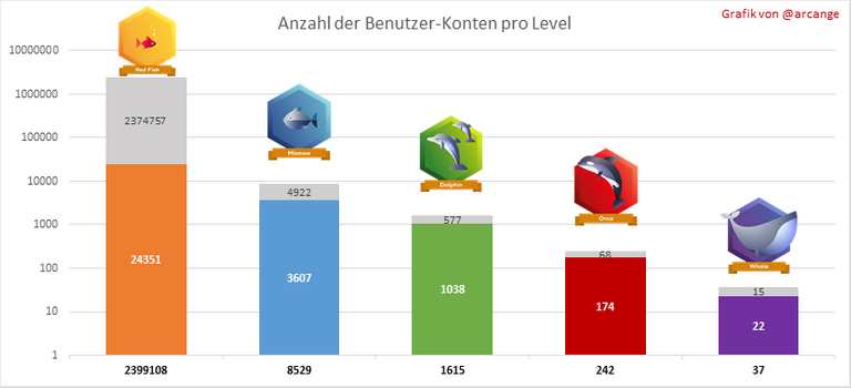 Der graue Teil jeder Spalte zeigt nicht genutzte Hive Power durch inaktive Konten an (siehe oben die Definition von inaktiv).