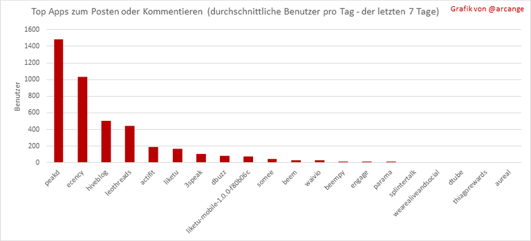 Diese Grafik zeigt, welche Apps am häufigsten zum Veröffentlichen von Posts und Kommentaren verwendet werden. Man beachte dabei, dass ein und derselbe Benutzer mehrere verschiedene Apps verwenden kann.