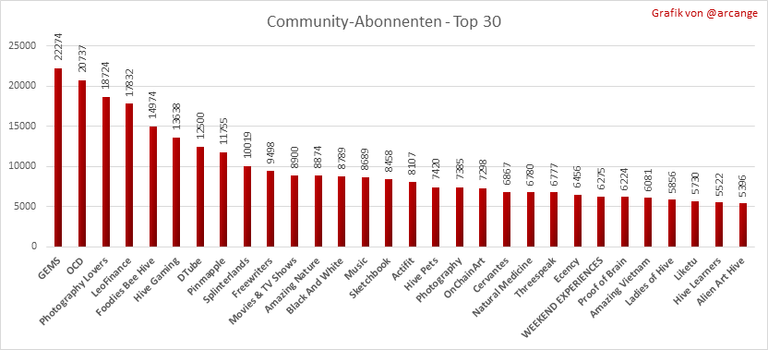 Diese Grafik zeigt die Communitys mit den meisten Abonnenten.