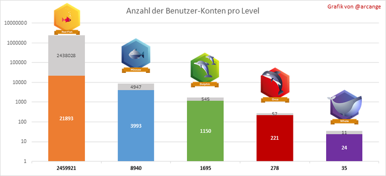 Der graue Teil jeder Spalte zeigt nicht genutzte Hive Power durch inaktive Konten an (siehe oben die Definition von inaktiv).