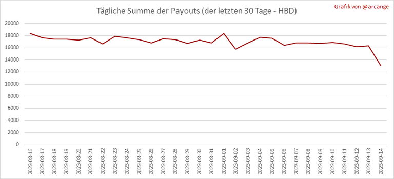 Diese Grafiken zeigen die Summe der verteilten Auszahlungen (Beiträge und Kommentare) an jedem Tag.