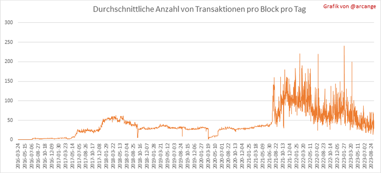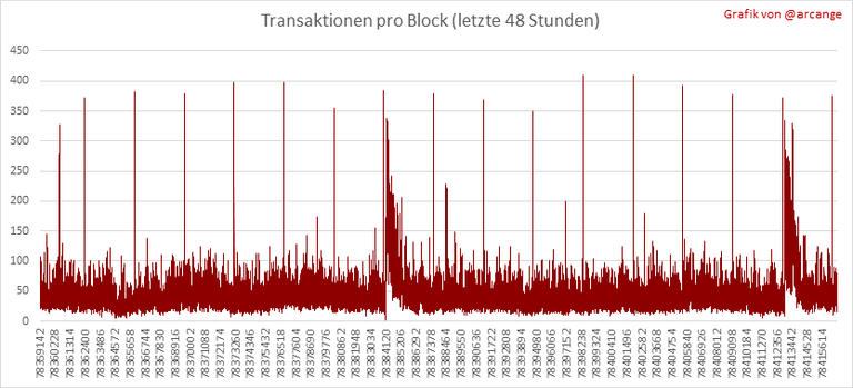 Diese Grafiken zeigen die Anzahl der Transaktionen pro Tag, die höchste Anzahl an Transaktionen pro Block, die durchschnittliche Anzahl an Transaktionen pro Block und die Anzahl der Transaktionen pro Block in den letzten 48 Stunden. Hier bekommt man eine Vorstellung von der gesamten Aktivität auf der Blockchain.