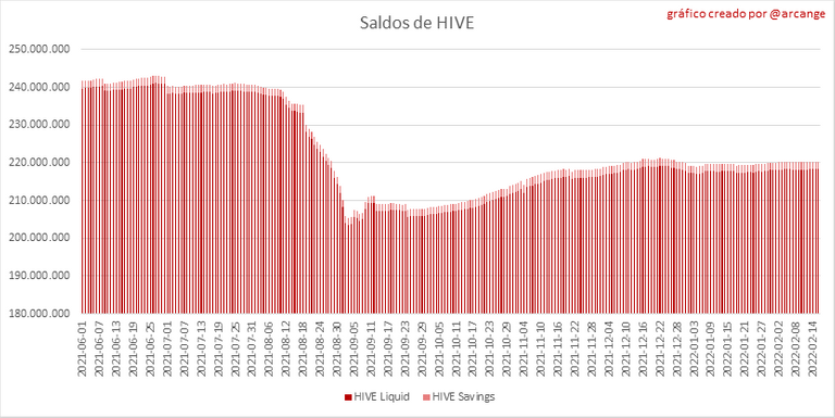 Este gráfico muestra el número de HIVE, liquido y en ahorros, en todas las cuentas.