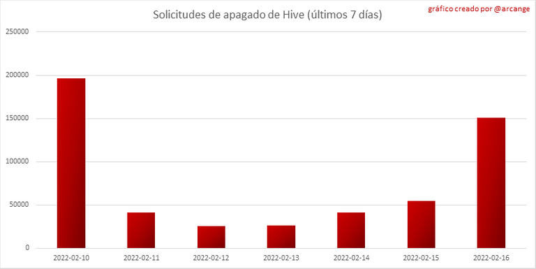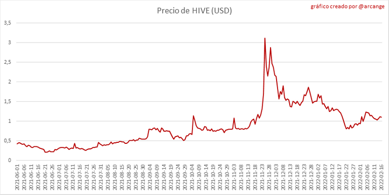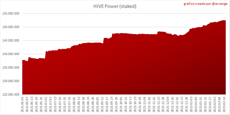 Toda la información presentada en este informe se basa en los datos recopilados de la cadena de bloques hasta las medianoche del 2022-02-16, hora UTC. El objetivo de este informe es brindarle una visión clara de lo que está sucediendo en la Hive blockchain.