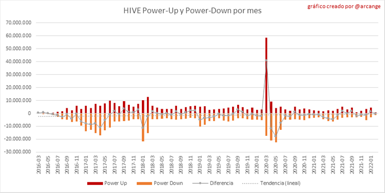 Este gráfico muestra el Powerup y Powerdown mensual y la variación resultante.