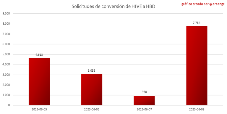 Note: Le recordamos que las solicitudes de conversión solo se finalizan después de 3 días. Solo entonces sabemos exactamente cuántos HIVE fueron destruidos a cambio del HBD recibido durante la solicitud de conversión.