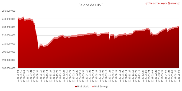 Este gráfico muestra el número de HIVE, liquido y en ahorros, en todas las cuentas.