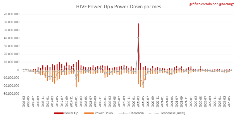 Este gráfico muestra el Powerup y Powerdown mensual y la variación resultante.