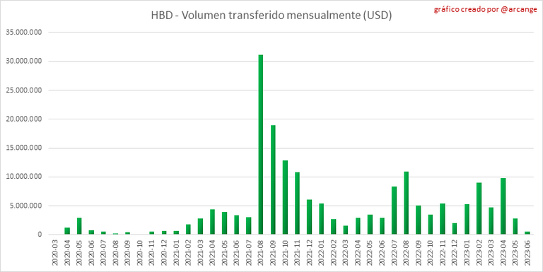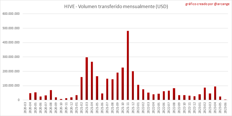 Estos gráficos muestran el volumen (en USD) de HIVE y HBD transferidos entre cuentas.