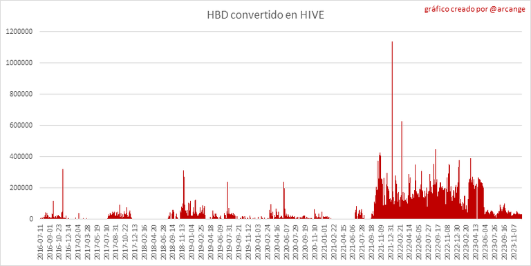 Note: Le recordamos que las solicitudes de conversión solo se finalizan después de 3 días. Solo entonces sabemos exactamente cuántos HIVE fueron destruidos a cambio del HBD recibido durante la solicitud de conversión.
