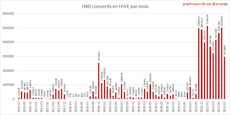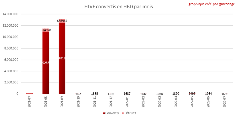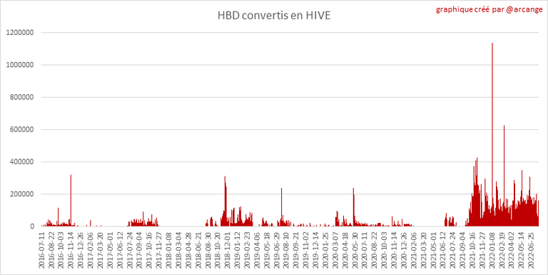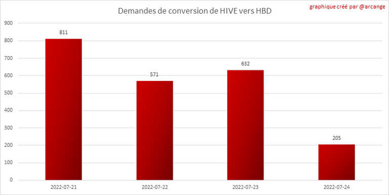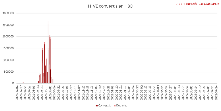 Note: Pour rappel, les demandes de conversion ne sont finalisées qu'au bout de 3 jours. Ce n'est qu'alors que l'on sait exactement combien de HIVE ont été détruits en contrepartie des HBD reçu lors de la demande de conversion.