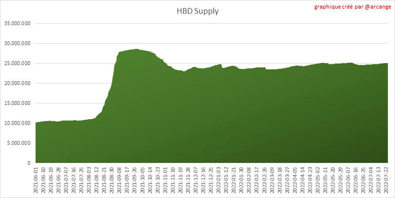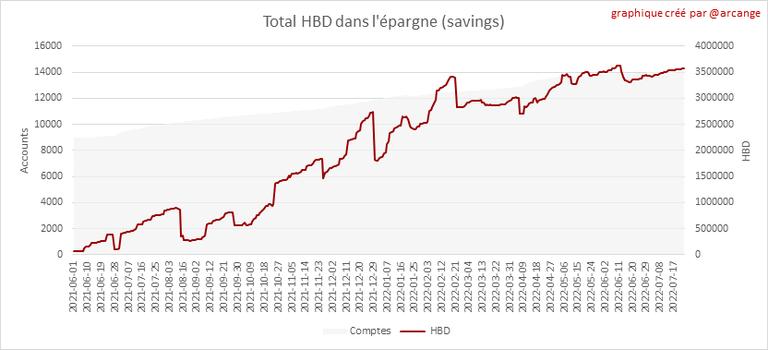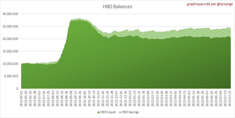 Ce graphique montre le nombre de HBD, liquides et en épargne, détenus par tous les comptes