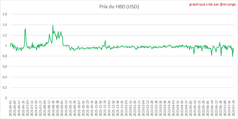 Ces graphiques montrent l'évolution des prix en USD pour le HIVE et le HBD.
