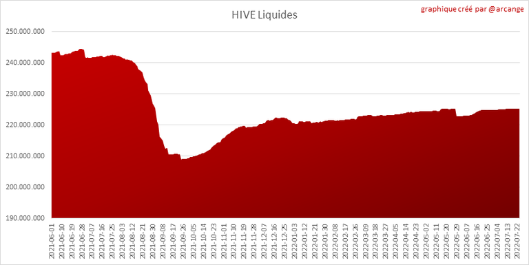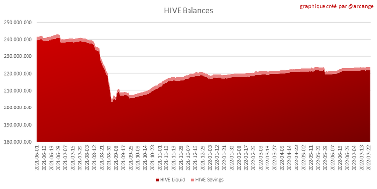 Ce graphique montre le nombre de HIVE, liquides et en épargne, détenus par tous les comptes.
