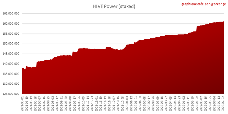 Ces graphiques montrent l'évolution des HIVE liquides et des HIVE bloqués (Hive Power).