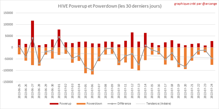 Ce graphique montre les Power-Up et Power-Down effectués au cours des 30 derniers jours et la variation qui en résulte. Le tableau montre les Power-Up et les Power-Down les plus élevées de la journée.