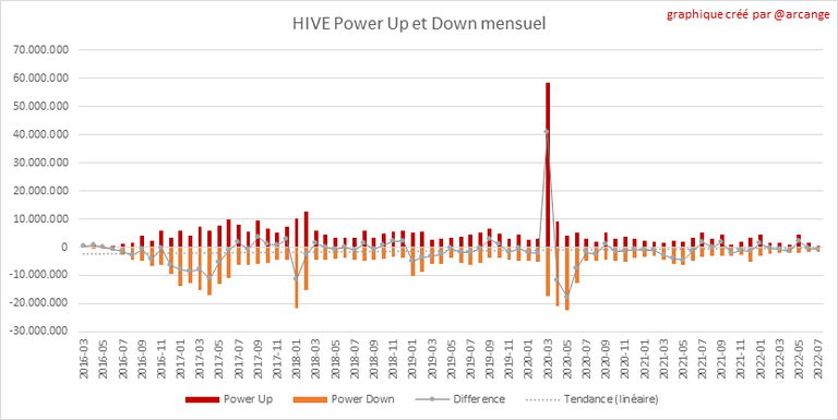 Ce graphique montre les Power-Up et Power-Down mensuels et la variation qui en résulte.