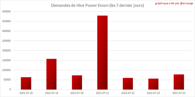 Ce graphique montre le nombre de HIVE déposés en garantie suite aux demandes de conversion de HIVE en HBD au cours des derniers jours.
