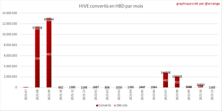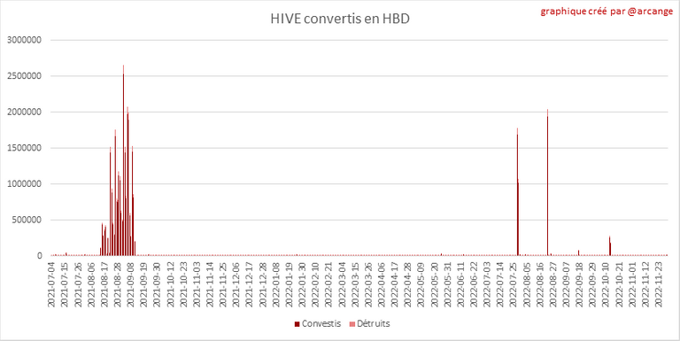 Note: Pour rappel, les demandes de conversion ne sont finalisées qu'au bout de 3 jours. Ce n'est qu'alors que l'on sait exactement combien de HIVE ont été détruits en contrepartie des HBD reçu lors de la demande de conversion.