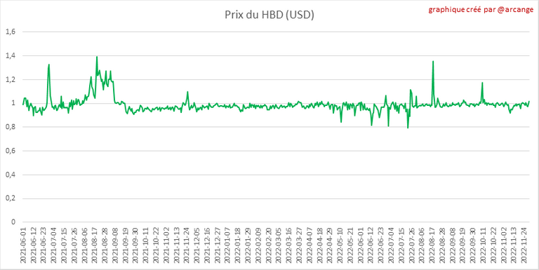 Ces graphiques montrent l'évolution des prix en USD pour le HIVE et le HBD.