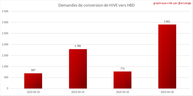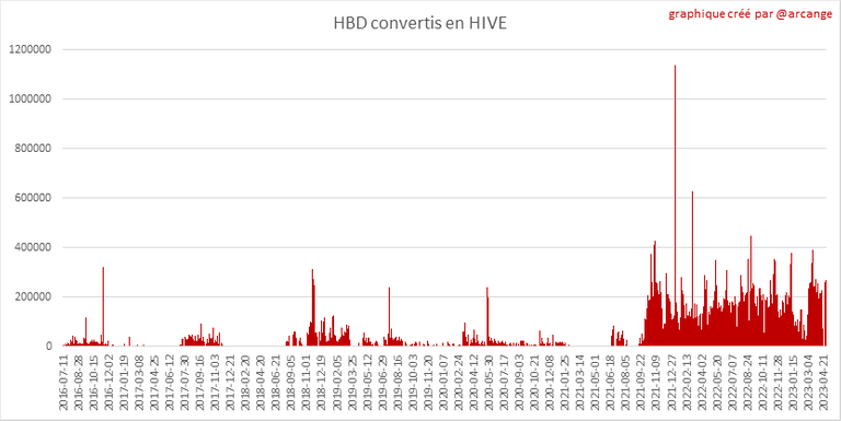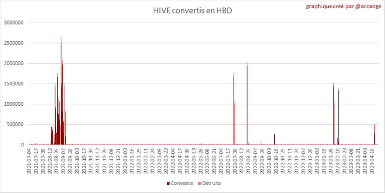 Note: Pour rappel, les demandes de conversion ne sont finalisées qu'au bout de 3 jours. Ce n'est qu'alors que l'on sait exactement combien de HIVE ont été détruits en contrepartie des HBD reçu lors de la demande de conversion.