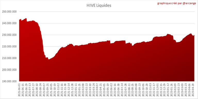 Ces graphiques montrent l'évolution des HIVE liquides et des HIVE bloqués (Hive Power).