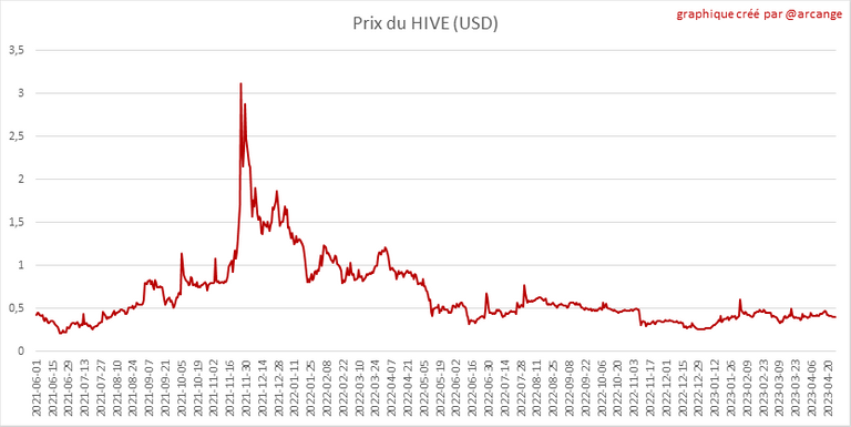 Ces graphiques montrent l'évolution des prix en USD pour le HIVE et le HBD.