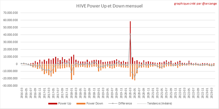 Ce graphique montre les Power-Up et Power-Down mensuels et la variation qui en résulte.