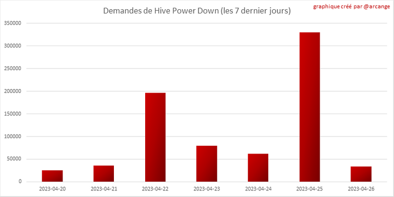 Ce graphique et ce tableau montrent la quantité de power-down initiée au cours des 7 derniers jours et quels sont les plus importants qui ont été initiés ce jour.