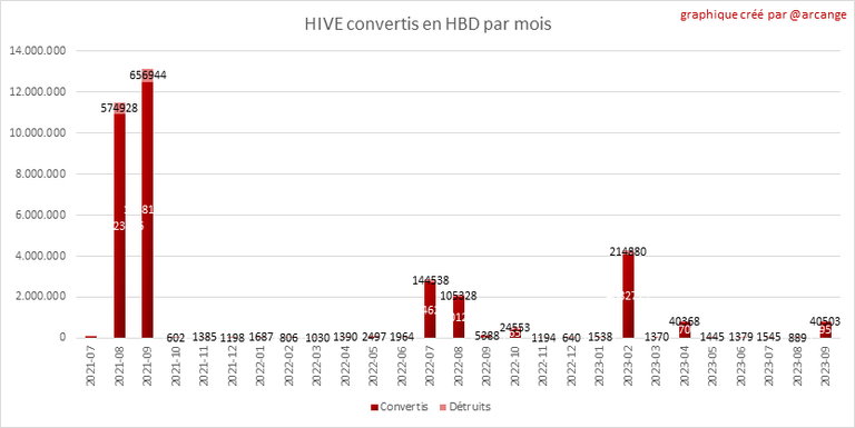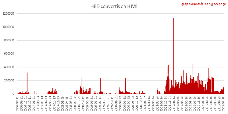 Note: Pour rappel, les demandes de conversion ne sont finalisées qu'au bout de 3 jours. Ce n'est qu'alors que l'on sait exactement combien de HIVE ont été détruits en contrepartie des HBD reçu lors de la demande de conversion.
