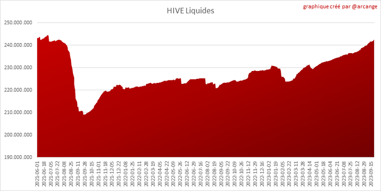 Ces graphiques montrent l'évolution des HIVE liquides et des HIVE bloqués (Hive Power).