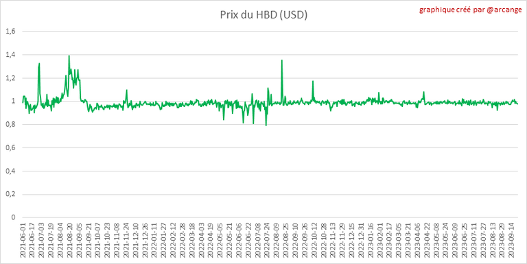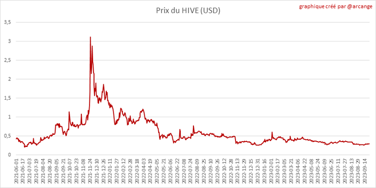 Ces graphiques montrent l'évolution des prix en USD pour le HIVE et le HBD.