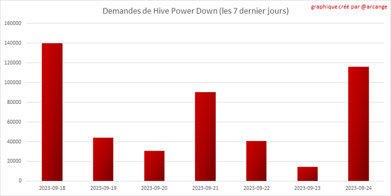 Ce graphique montre le nombre de HIVE déposés en garantie suite aux demandes de conversion de HIVE en HBD au cours des derniers jours.