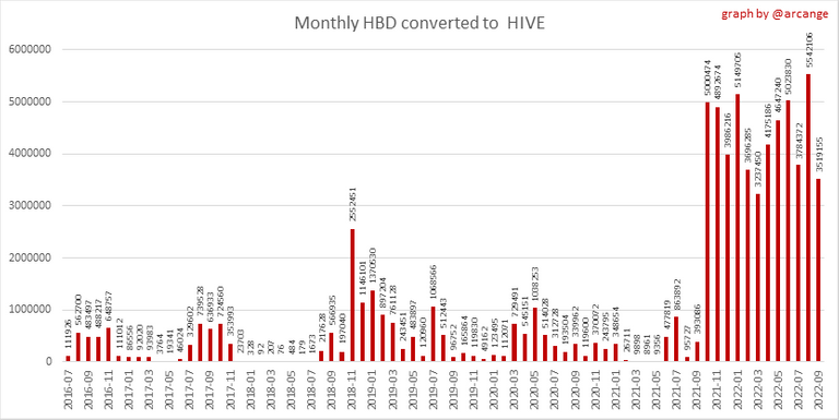 These graphs show the number of HBD burned, each day and each month, following requests to convert HBD to HIVE.